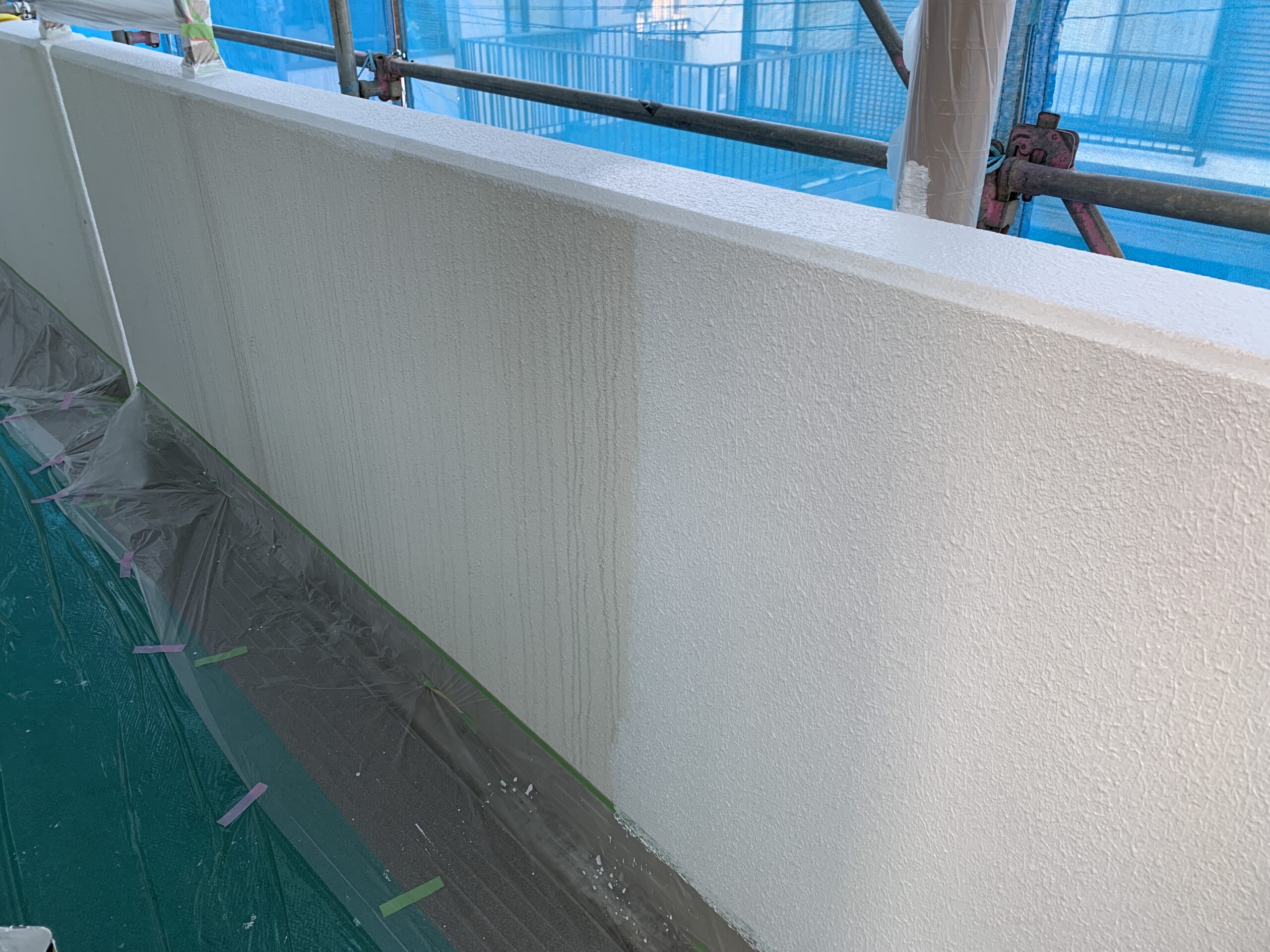 耐久性、付着性、防カビ性に優れ、素材への浸透性も高いため、通常シーラーが不要なのですが、下地にチョーキング現象が起きていましたので、念の為カチオンシーラーを塗装後に水性ケンエースを塗装しました。
