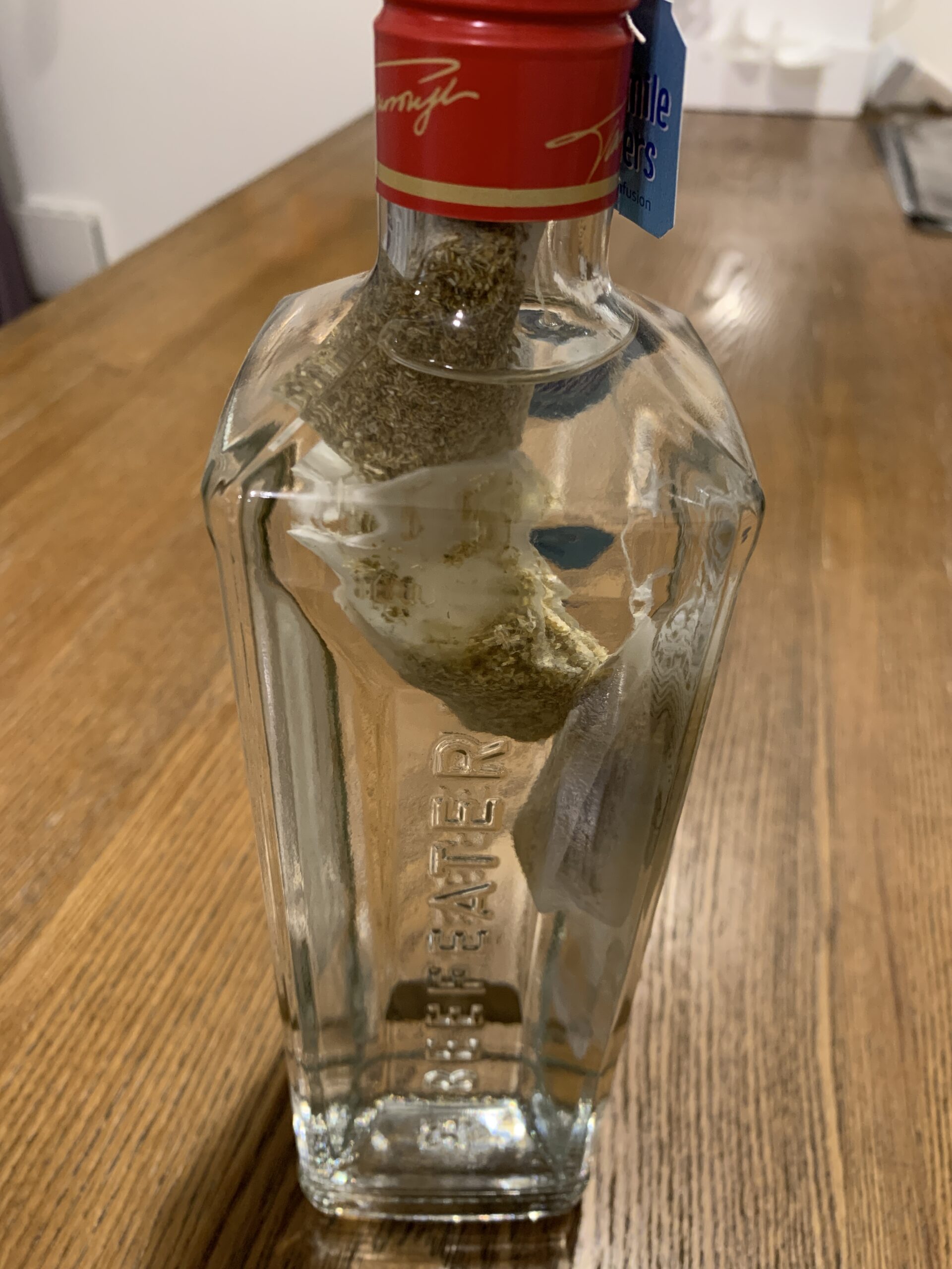ジンにカモミールのティーバッグを3個入れて12時間漬け込みました。