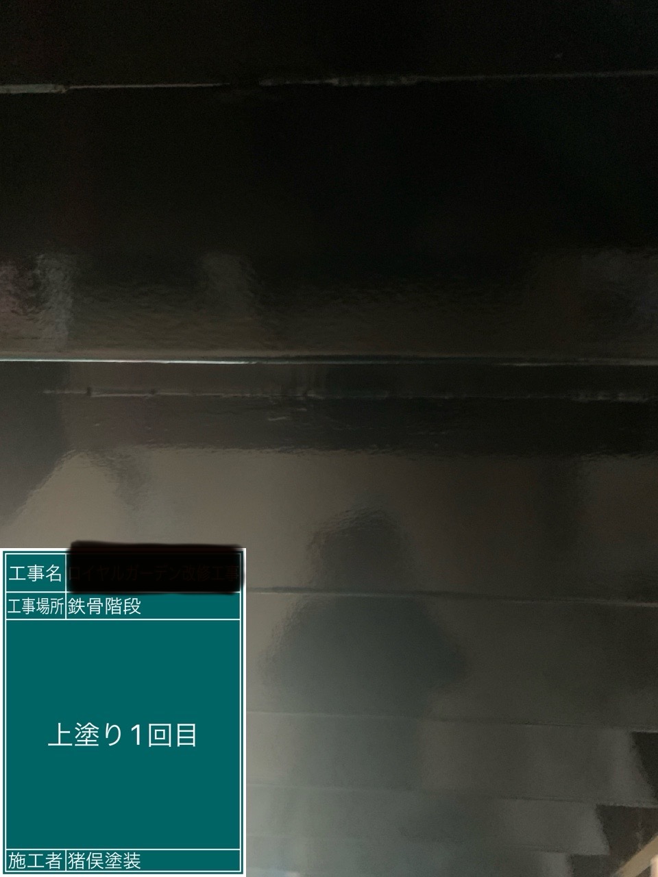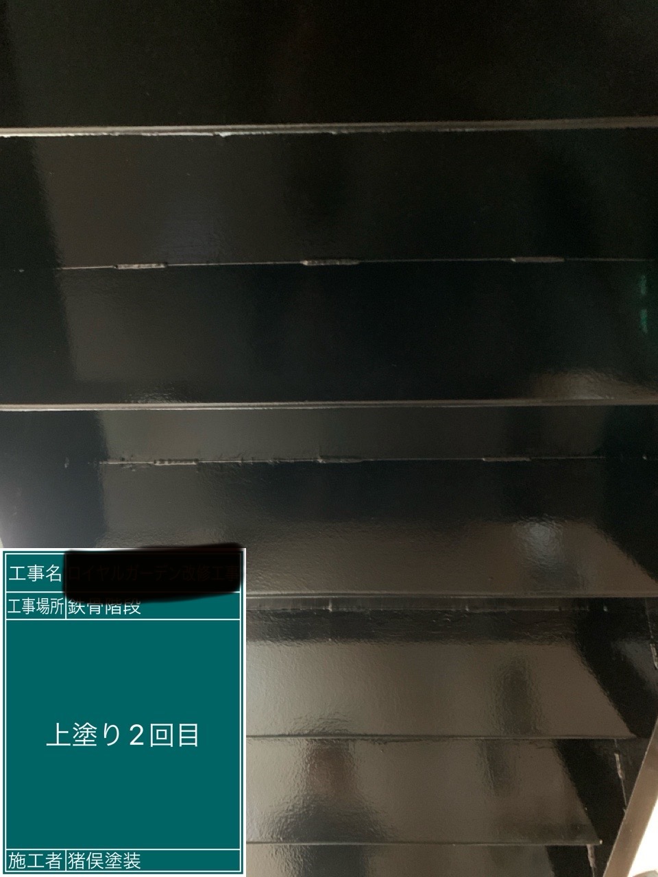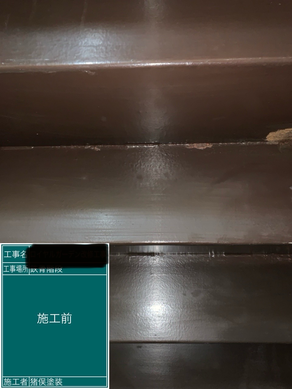 それでは、下に鉄骨階段の施工前、下塗り、上塗り1回目、上塗り2回目の工程写真を載せますので参考にして頂きたいです。