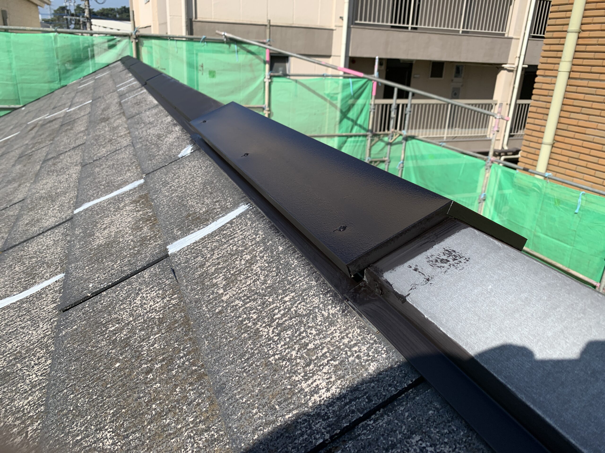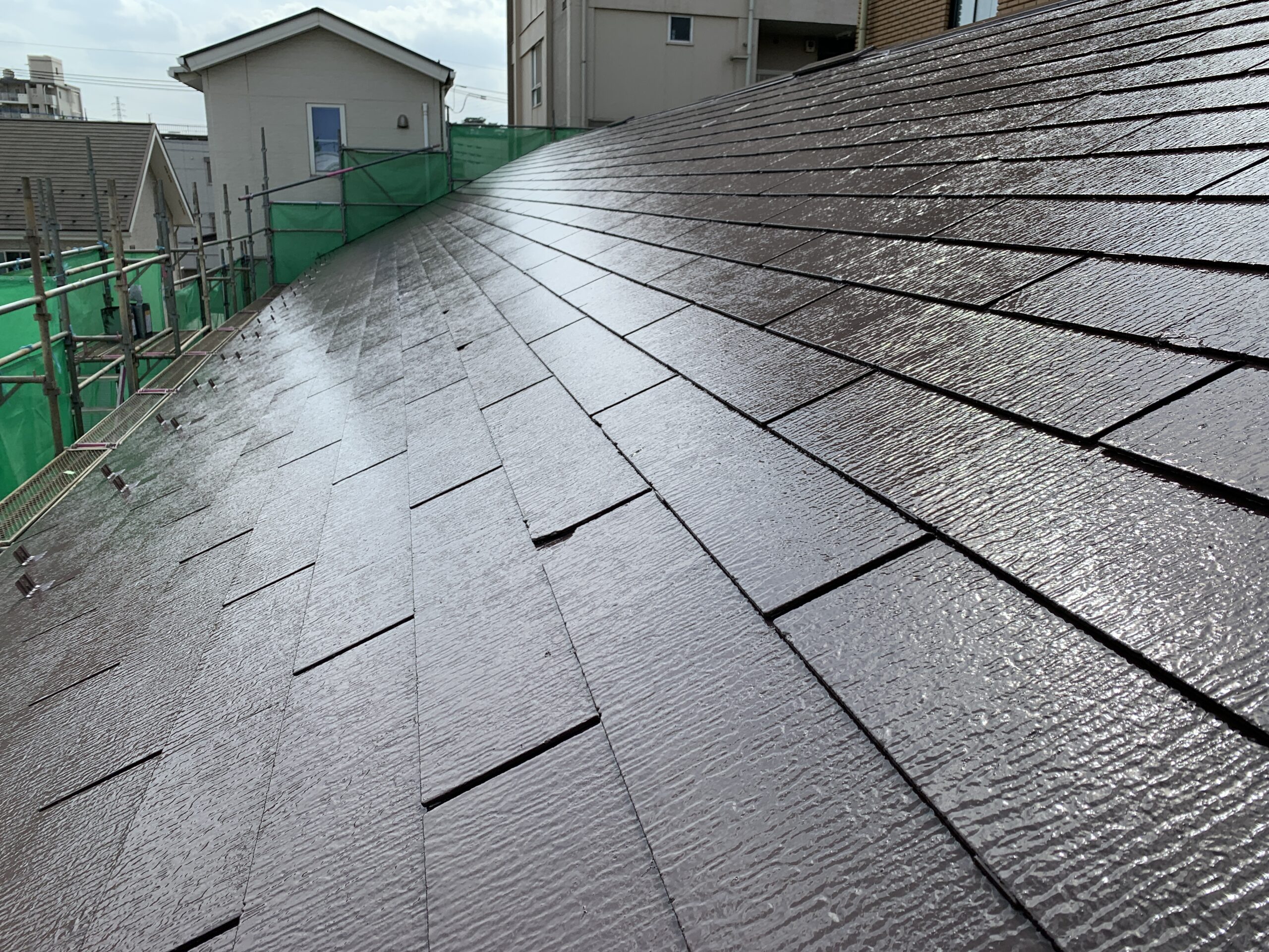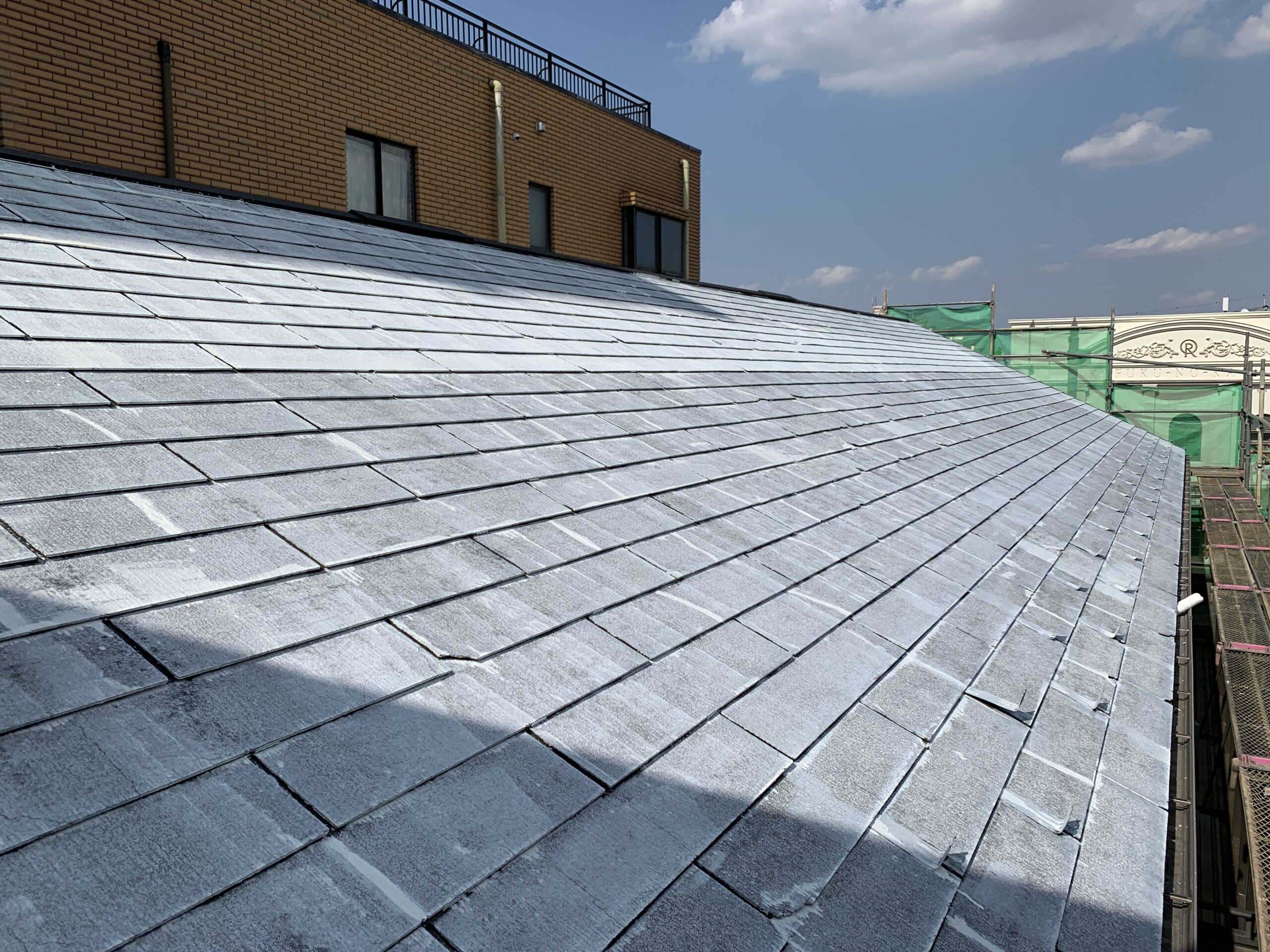 作業が順調に進み、屋根の塗装工事が完了しました。