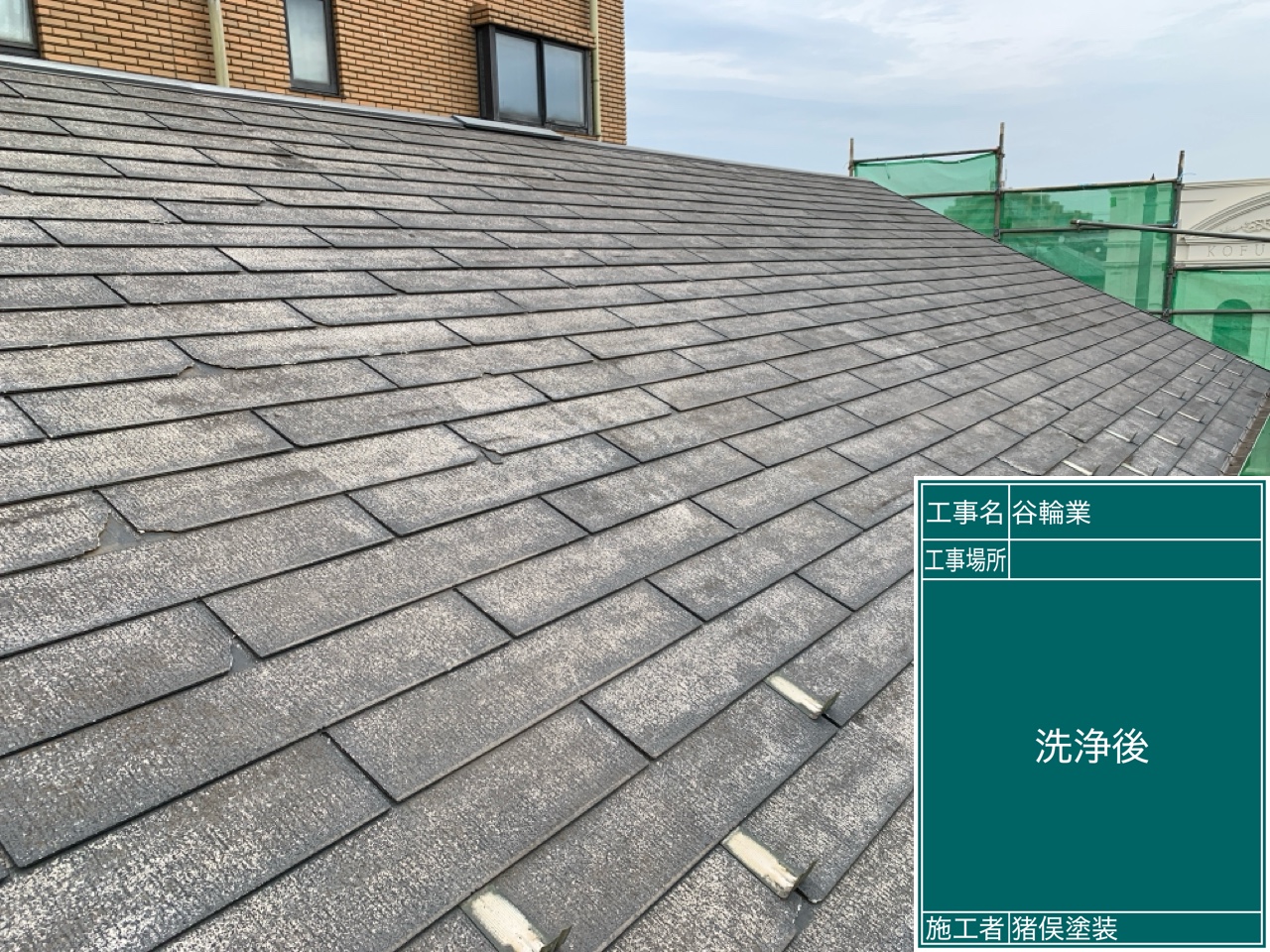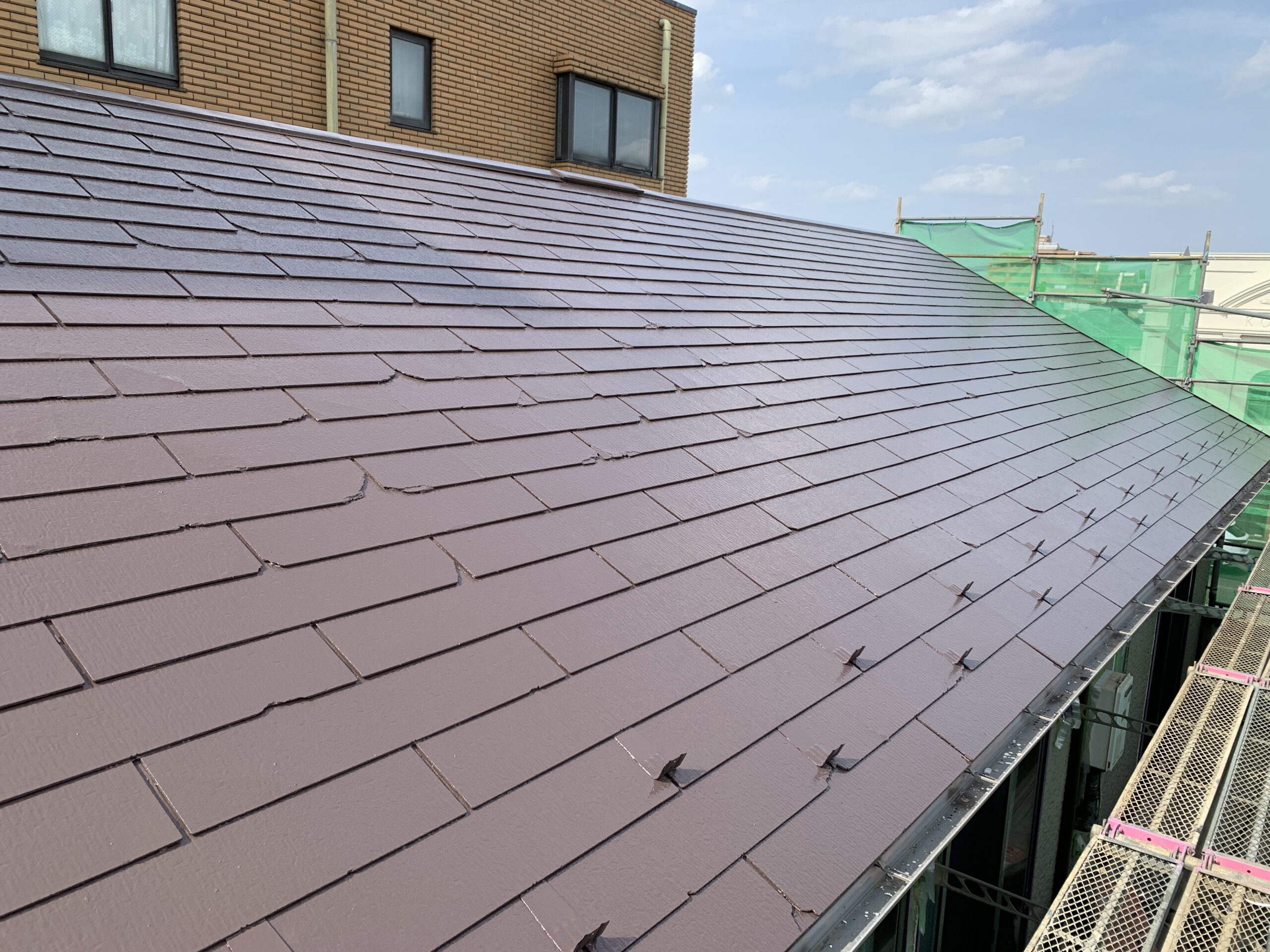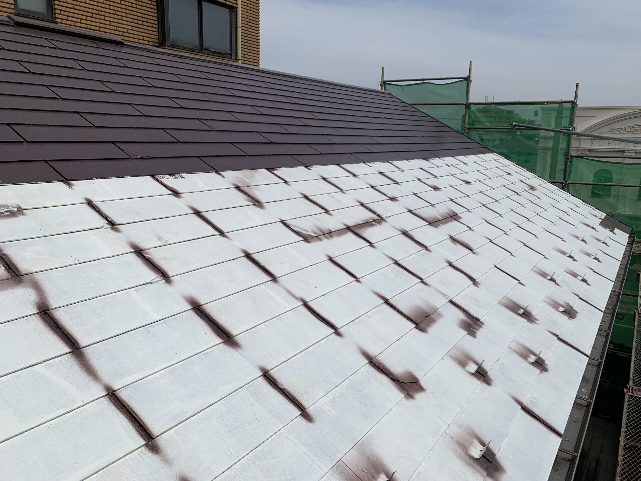 作業が順調に進み、屋根の塗装工事が完了しました。