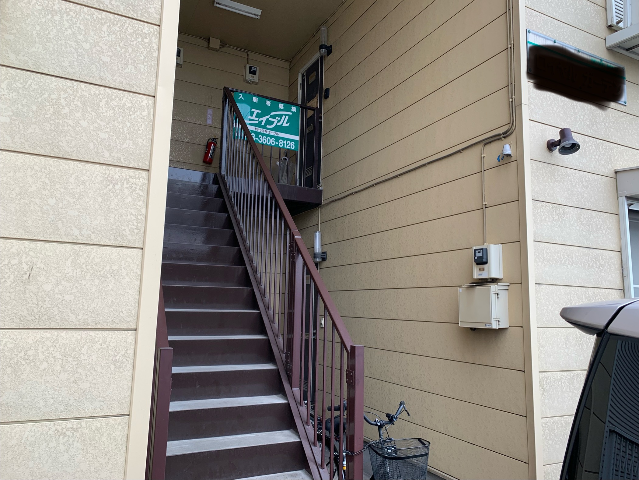 八潮市のアパートで、外壁、屋根、雨樋や鉄骨階段の塗り替え工事を行いました。今回は鉄骨階段編です。外にある鉄骨階段なのですが、あまり雨や日の光が当たらない天井の下にある鉄骨階段なので、あまり劣化は見当た