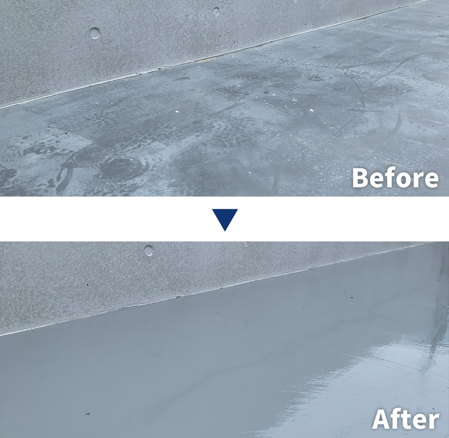 塗装をする前に、まずは補修によってコンクリートの表面を原状回復させ、万全の状態で次の工程へ移ります。
